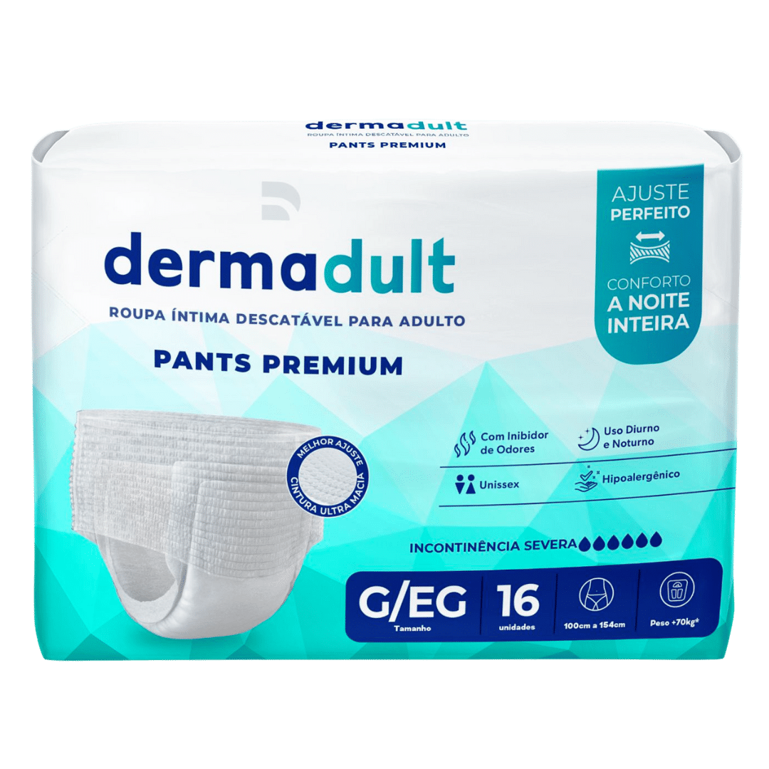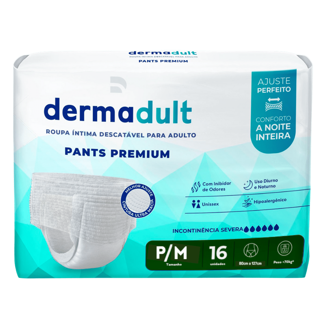 A Dermadult Pants é uma fralda-calça descartável desenvolvida especialmente para o público adulto, oferecendo praticidade, conforto e máxima absorção. Ideal para uso diário, garante proteção prolongada e sensação de frescor.